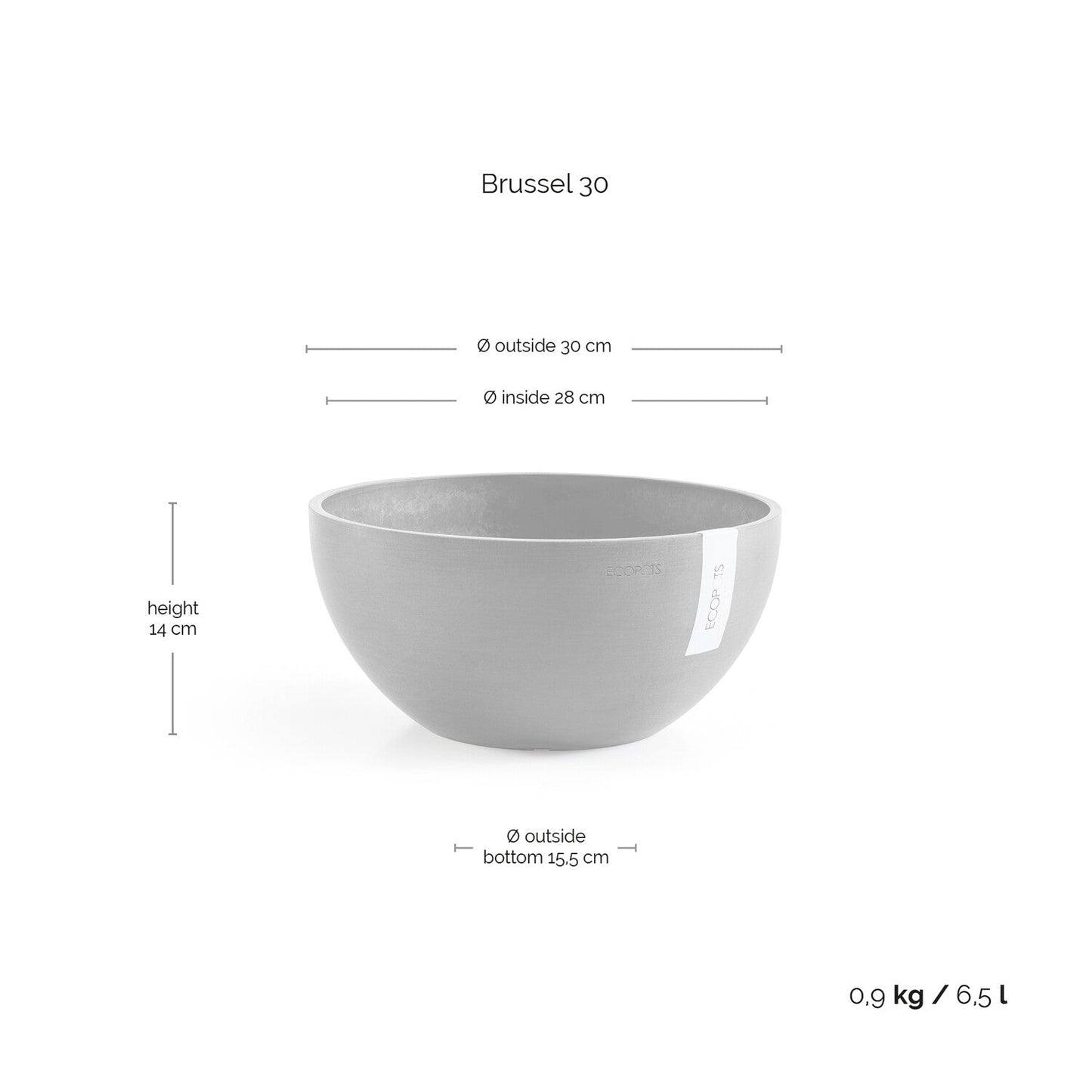 Ecopots Brysseli - Matala ruukku perinteisellä muotoilulla